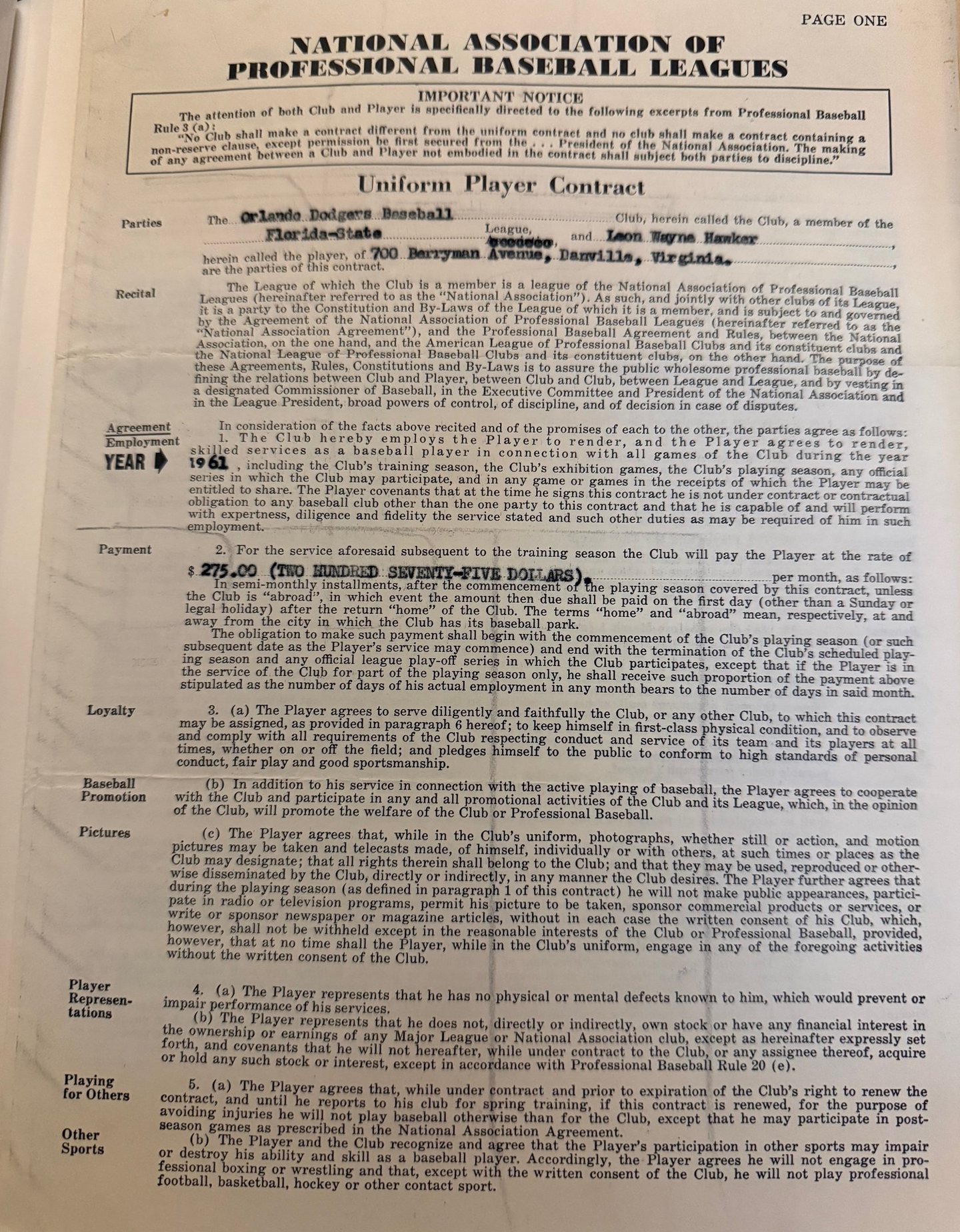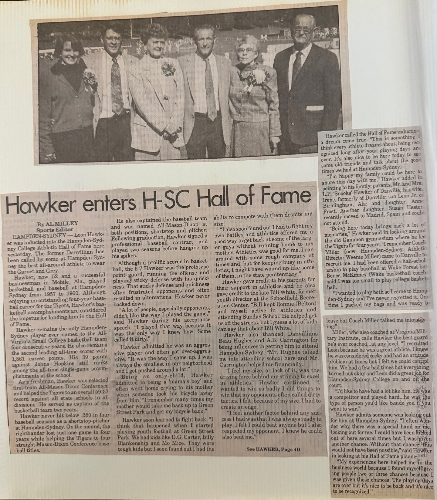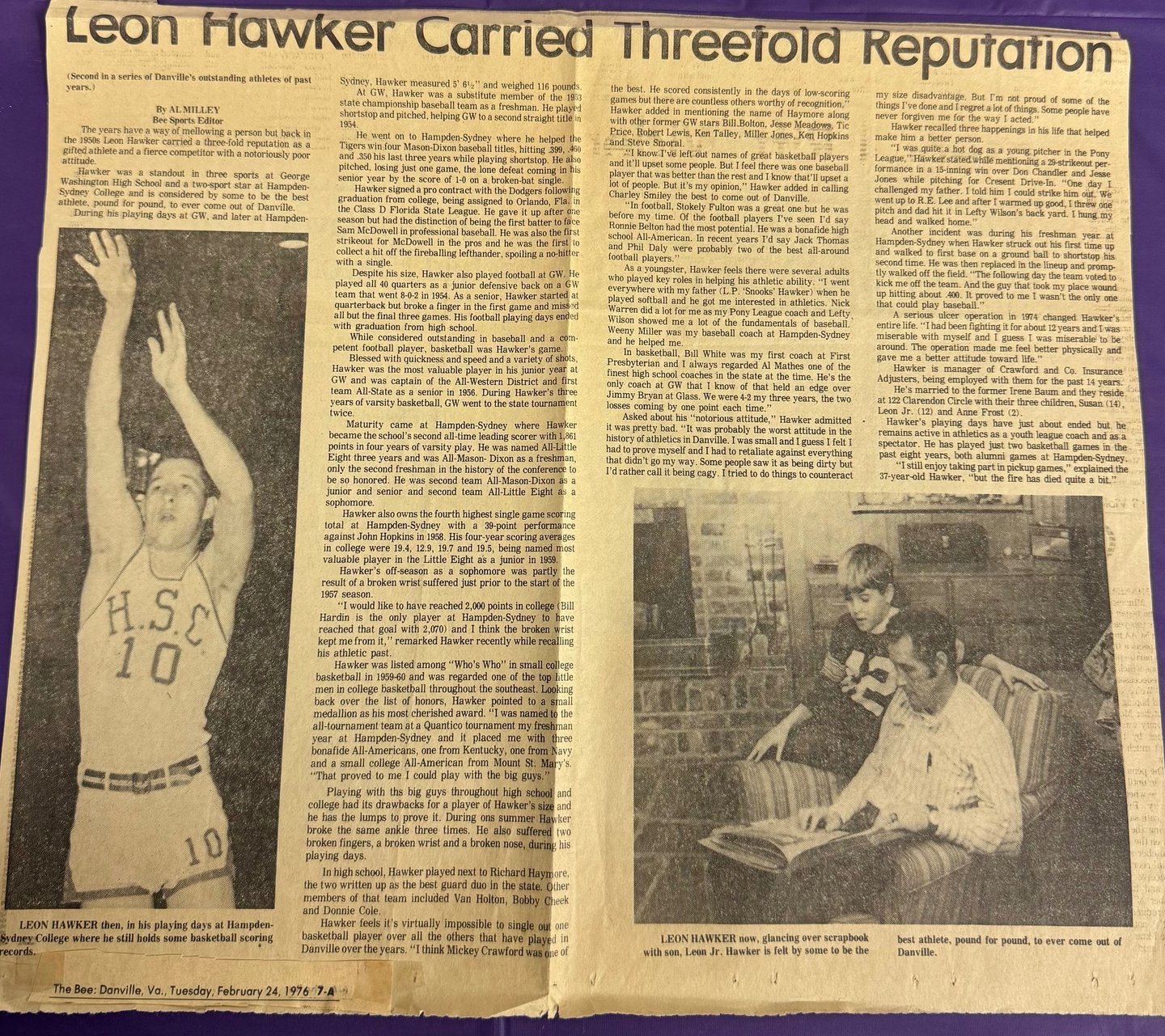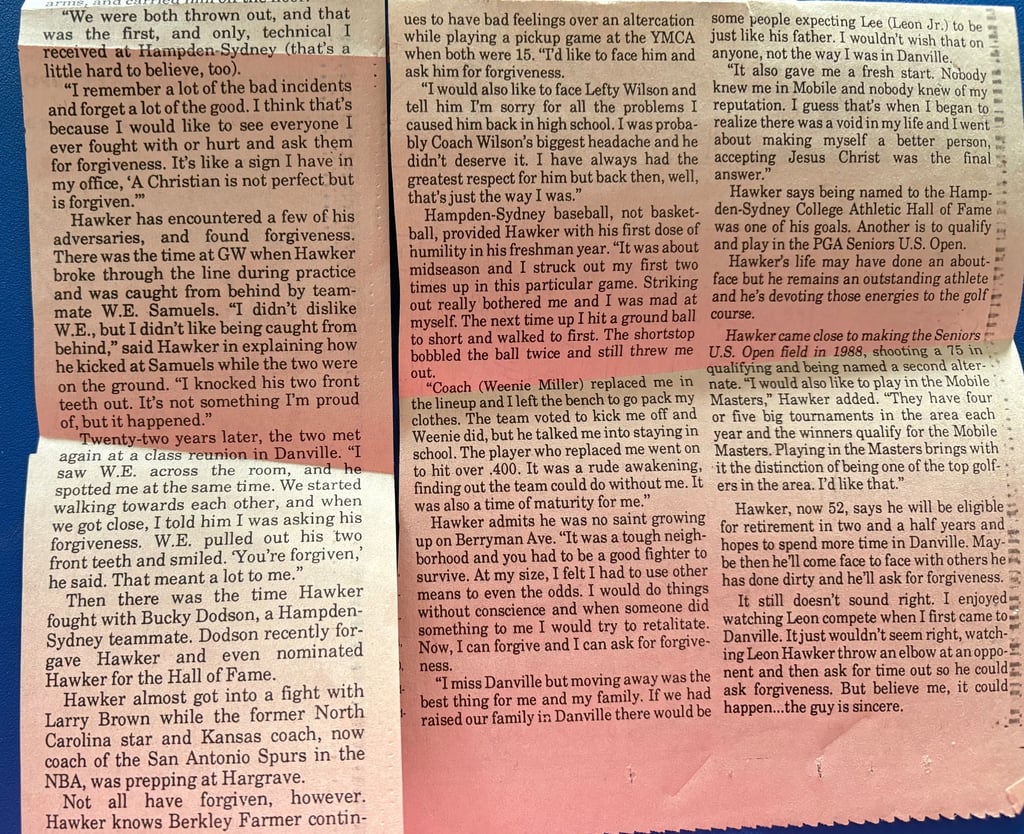 Leon Wayne Hawker was born on May 31, 1938, in Danville, Virginia. Small in stature, he stood 5’6” and weighed 125 pounds in high school, later reaching 145 pounds in college. Blessed with exceptional athletic ability, his accomplishments were well-documented in newspaper clippings and periodicals.